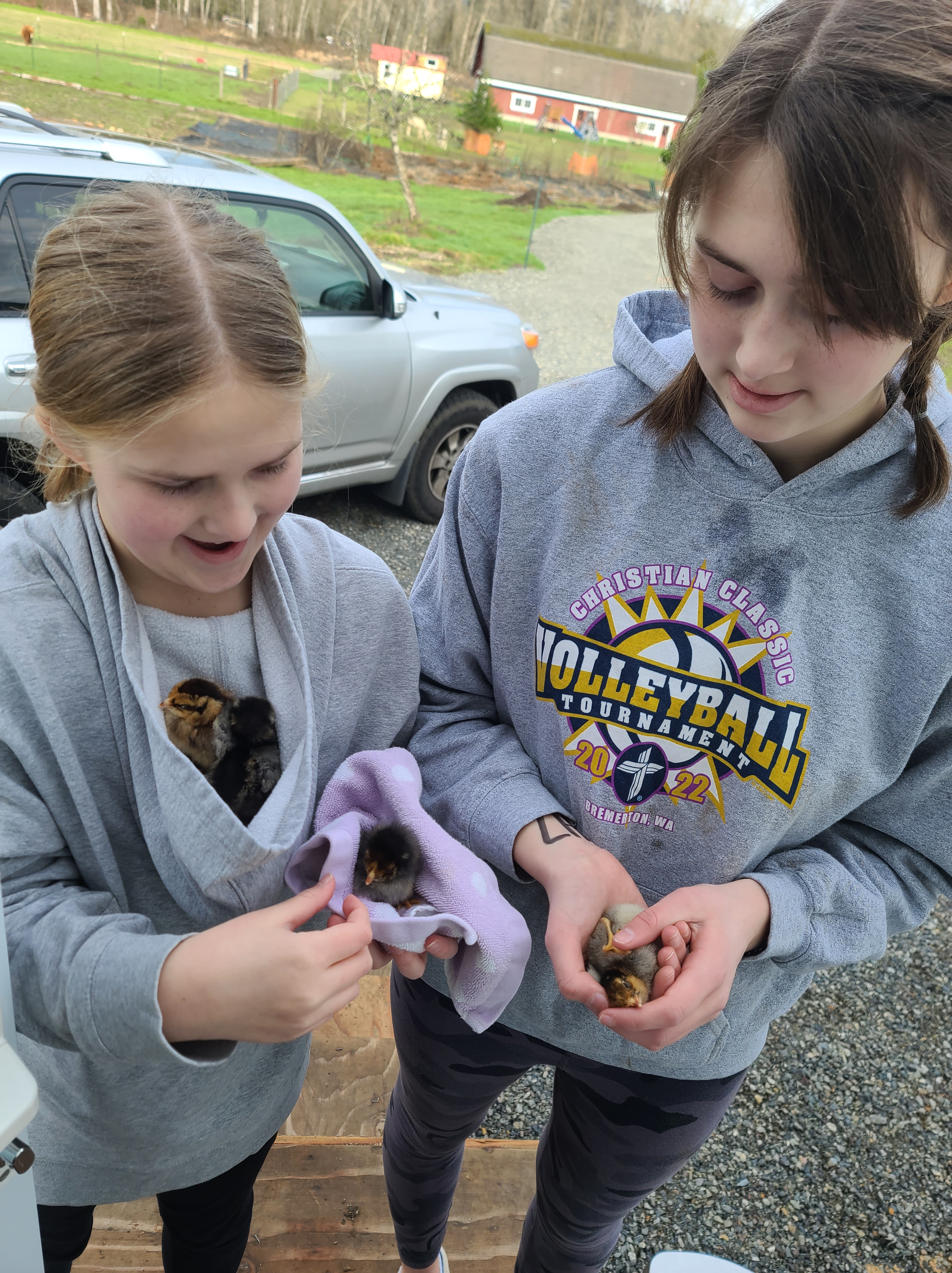 Nah, we have the chickens. And baby chickens. But the chickens we have are not the ordinary chickens you would think of when you think of chickens. As is everything else on this farm. We have black chickens with feathers on their feet, ones that look like turkeys, ones that look like crows, and darn rosters. There are two rosters. One of them is fine. The other? Not so much. I don’t know what is wrong with that roster, but it decides to be loud and cock-a-doodle-do all the time. Working on getting a barn cat…it’d give the mice a run for their money. Yes, mice.