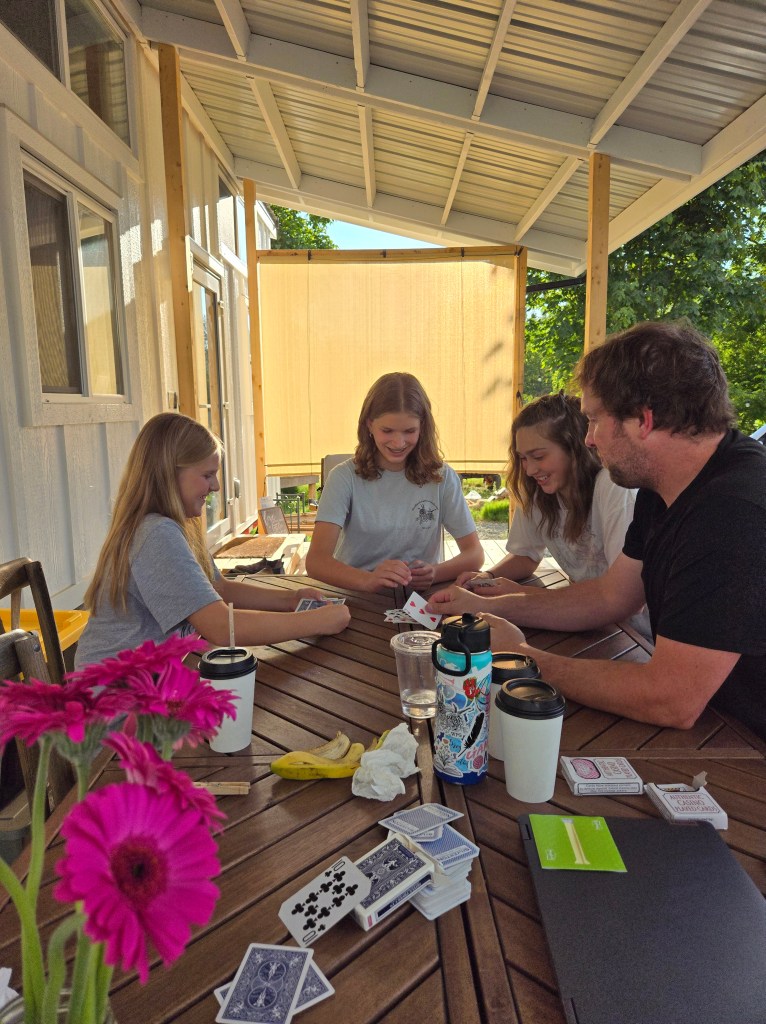 Well, the title says it all…Summer tiny living on a flower farm is pretty remarkable. For one thing, the fact that we could literally be out on the deck all day was beyond amazing. We ate all our meals outside (in our pj’s frequently), played lots of games (chicken foot became a popular game thanks to some cousins & nerts), had fires in a fire pit, the girls enjoyed archery in the field – thanks to some lessons from my dad and our “landlord”, haha! Lots of animal time (Ken and Linds even got the honey bees going again), playing with the farm kids, art projects, helping out around the farm (or just watching lots of work happen), there was always something going on around here! Summer is the busiest on the farm (for obvious reasons) but being out on the back field, watching the flower farm come to life was really something special and relaxing.